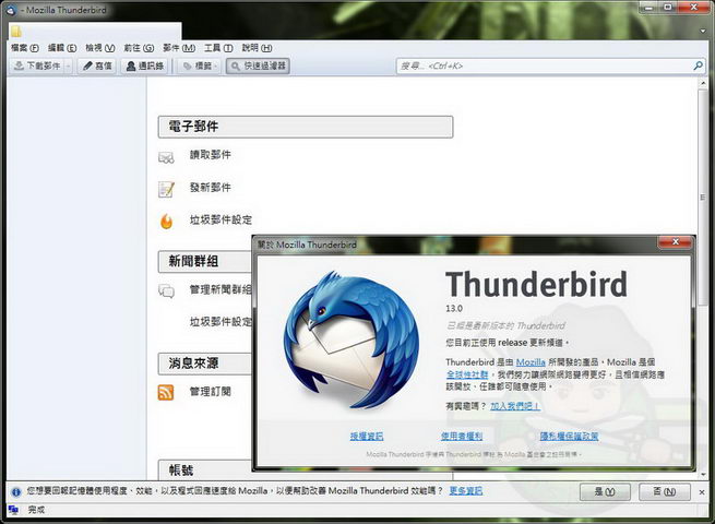 雷鳥Mozilla Thunderbird 13.0 Final (E-mail 郵件管理軟體) 繁體中文可攜版