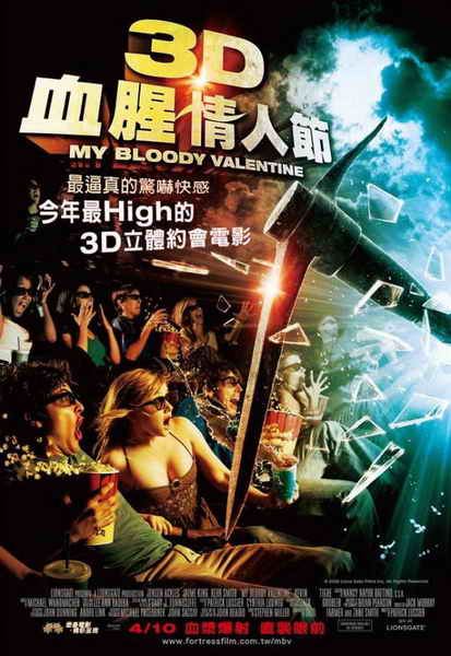 【血腥情人節】(My Bloody Valentine 3-D)絕對滿足觀眾的觀感需要,將血漿噴灑在你的臉上,